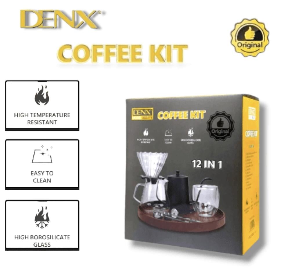 شنطة صنع القهوة 12 قطعة من DENX | مجموعة متكاملة لتحضير القهوة باحترافية وإتقان